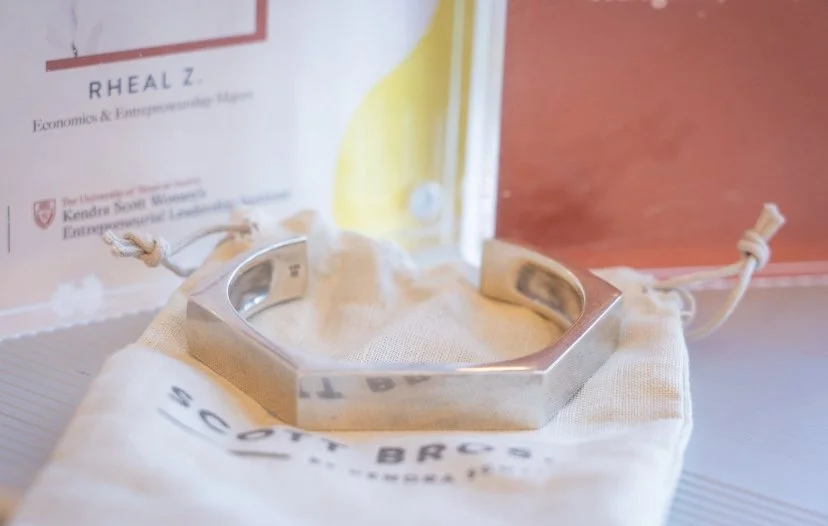 After presenting, our product was chosen to be made and sold in Kendra Scott stores. Here is The Congress Cuff in the flagship Kendra Scott store on South Congress.
